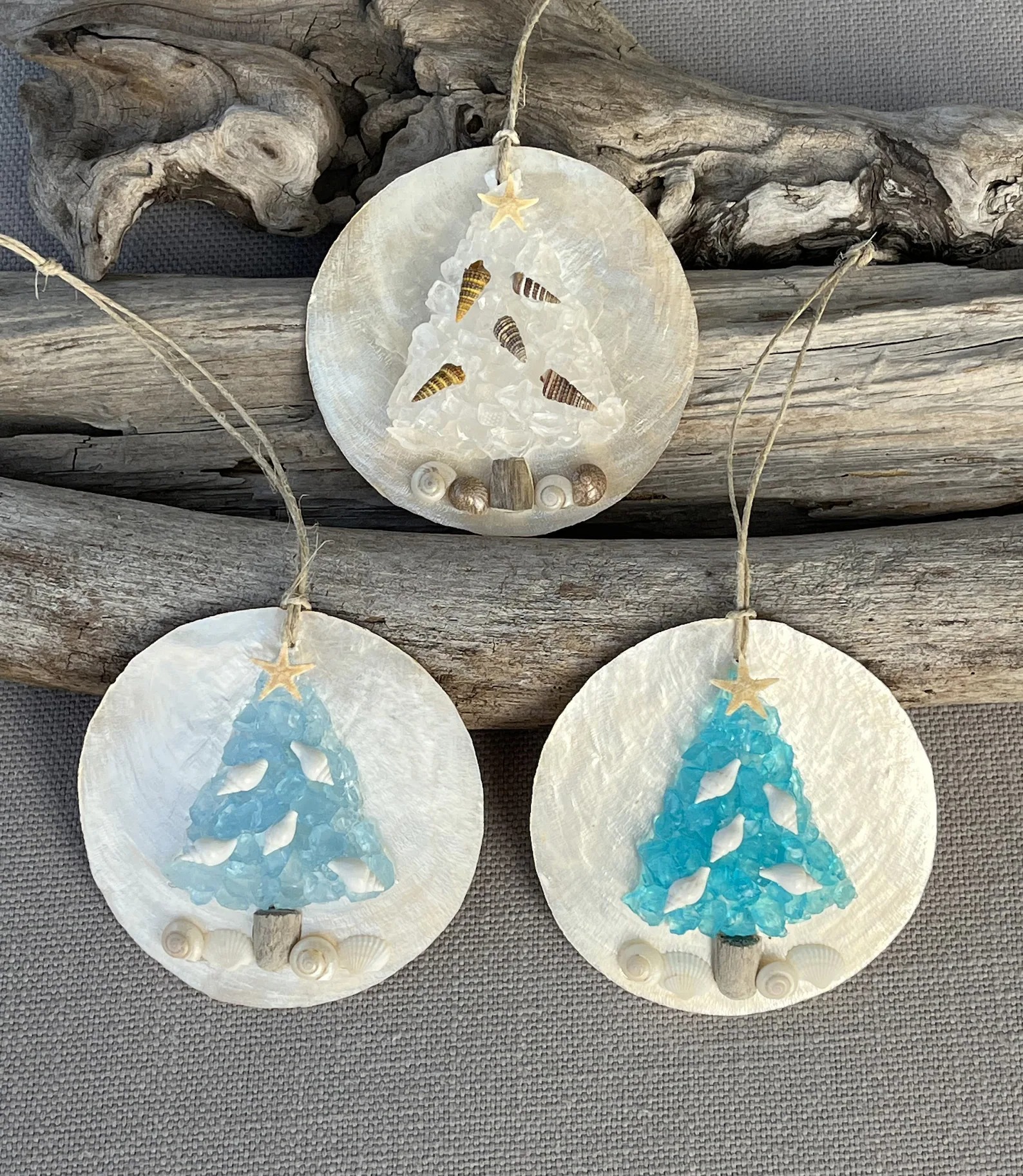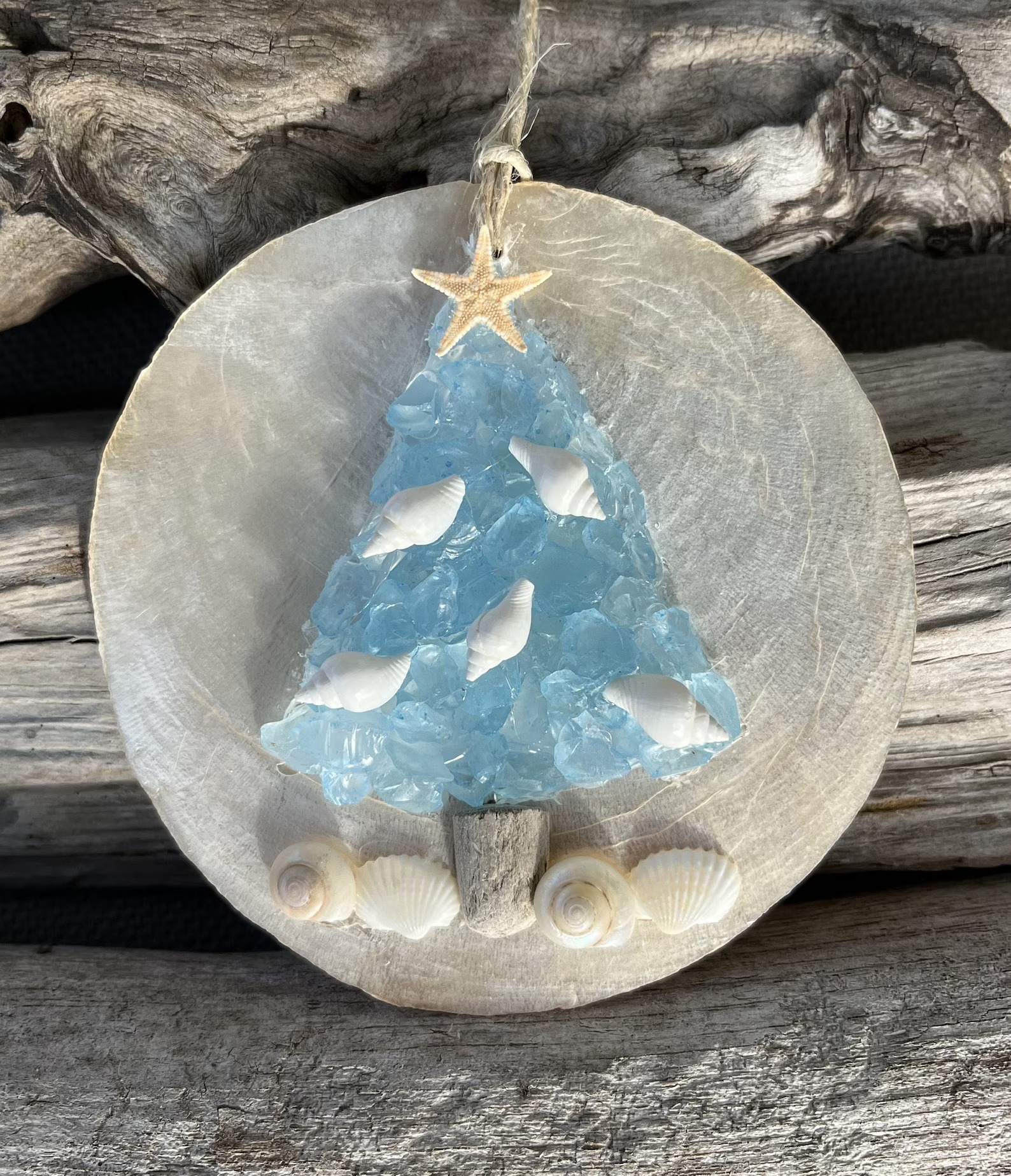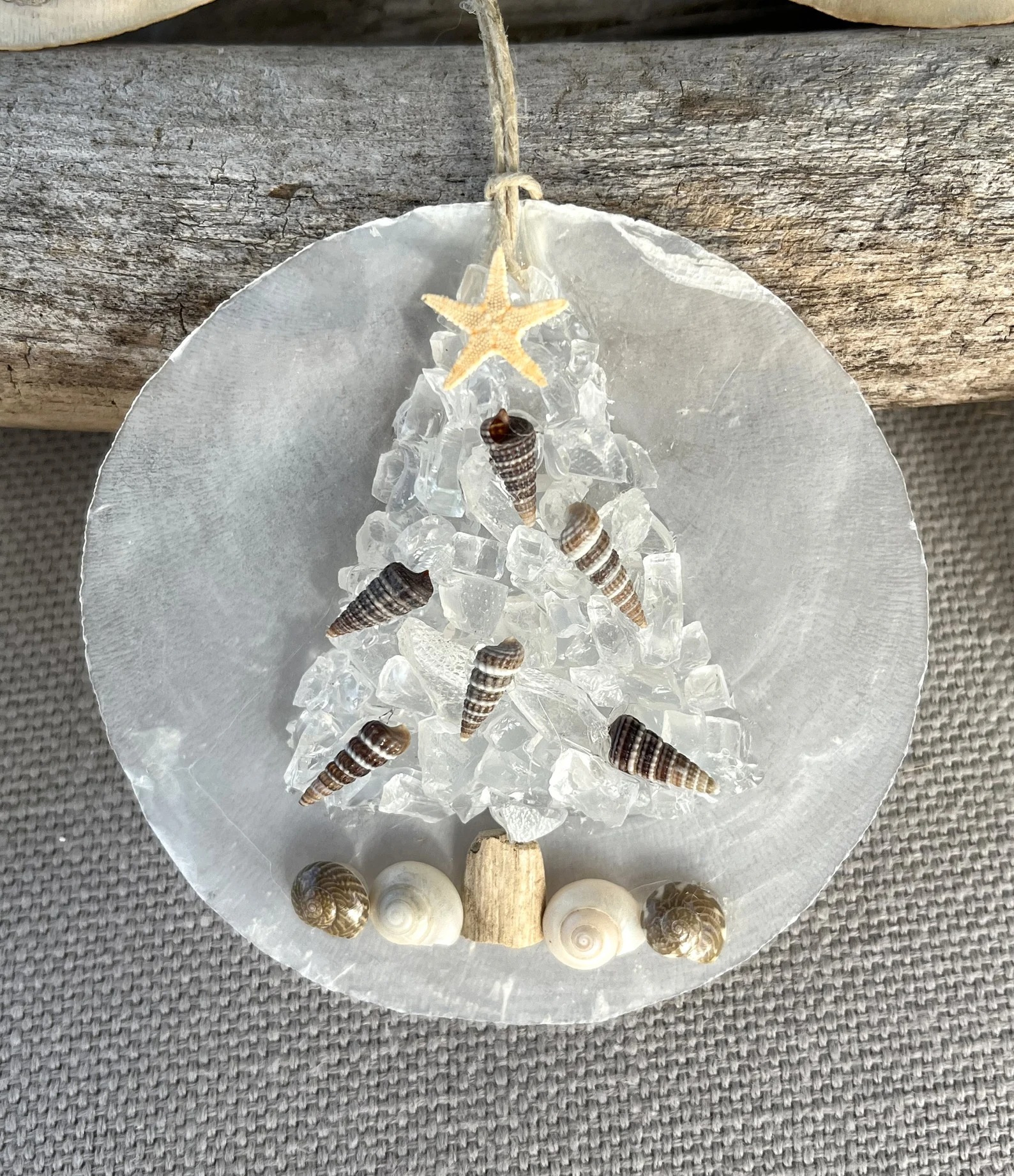 🌊Beach Christmas Ornament. These beautiful ornaments have been made with real Capiz shells, glass chips and finished with tiny shells and a starfish.