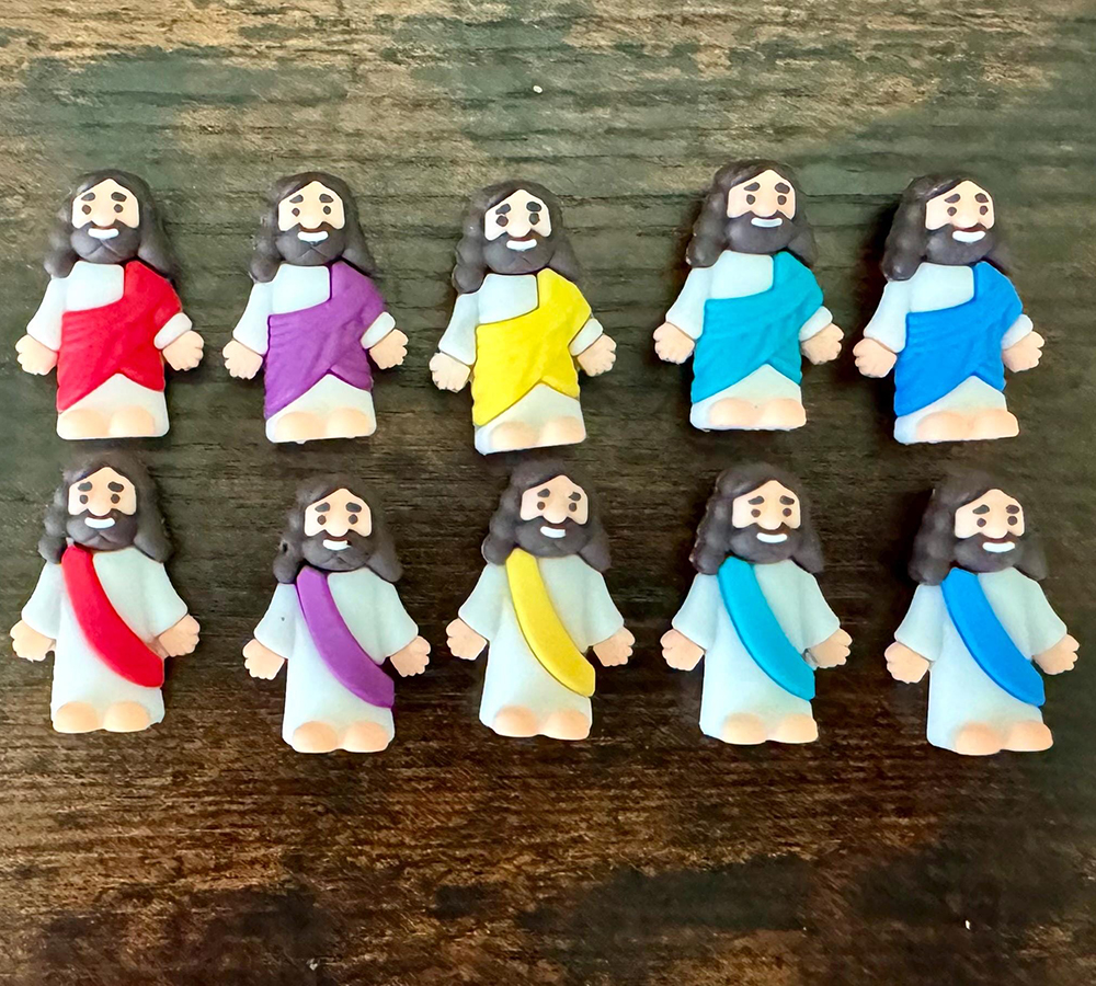 • Each miniature Jesus measures approximately 1.2" x 1.4" and is made of PVC