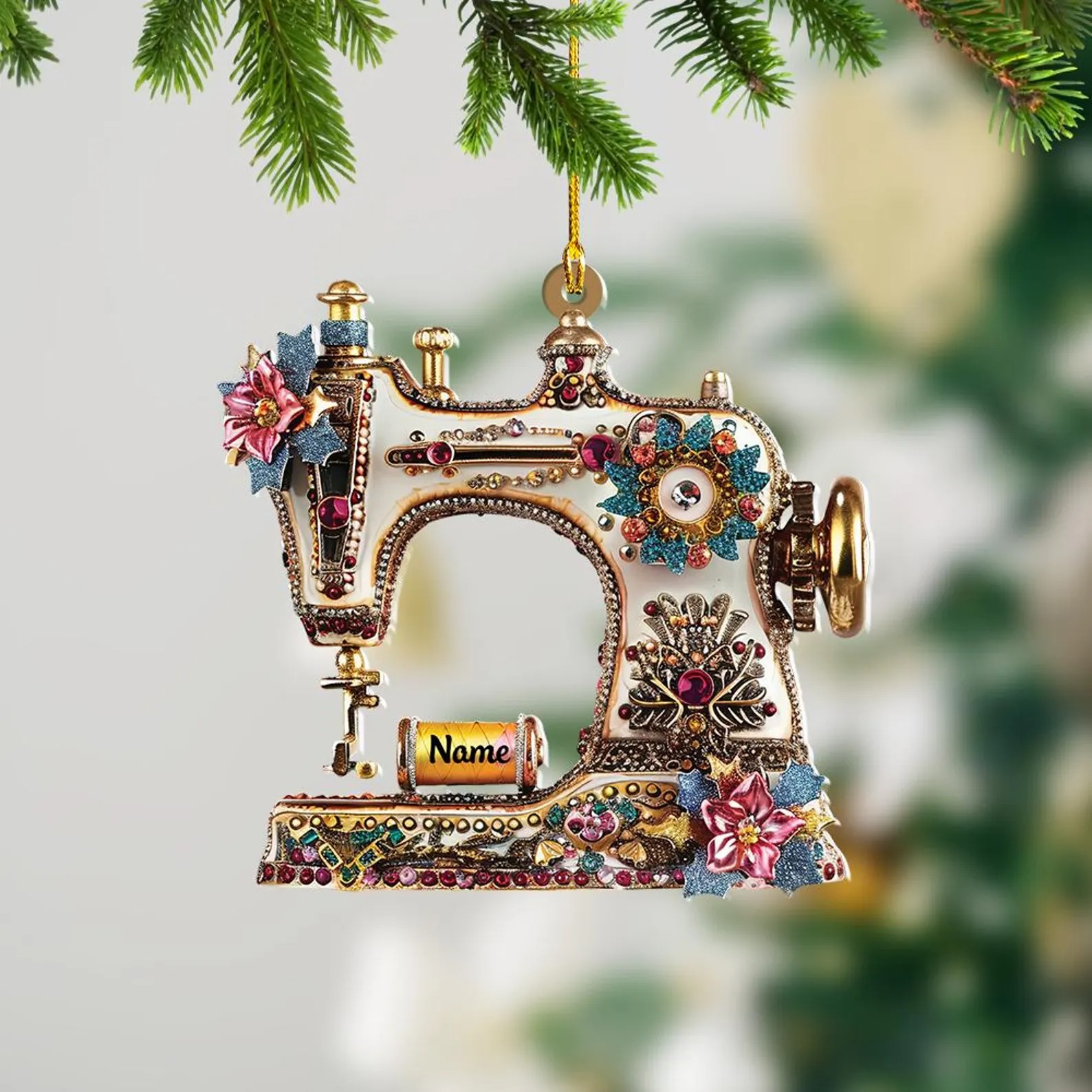 🎁Celebrate the art of sewing and craftsmanship this holiday season with our stunning, jeweled Sewing Machine Ornament.