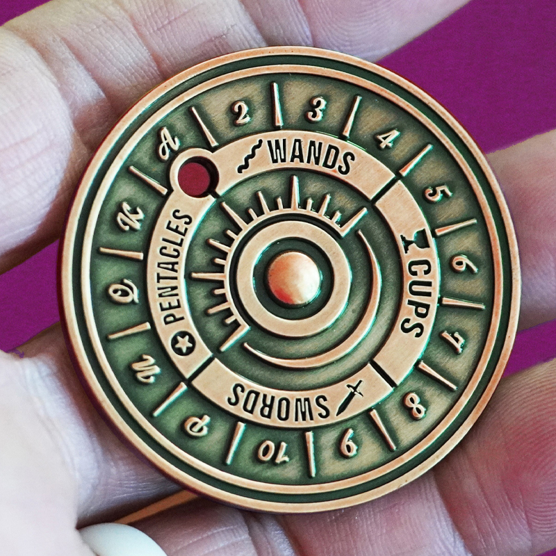 💖Amazing to have a complete tarot deck on just one coin!Fully Functional Spinning Tarot Coin Jewelry Necklace w/ All 78 Major + Minor Arcana Cards.